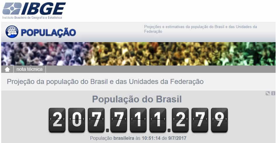 De acordo com as projeções do IBGE, atualmente é bem provável que o Brasil conte com mais de 200 milhões de brasileiros!